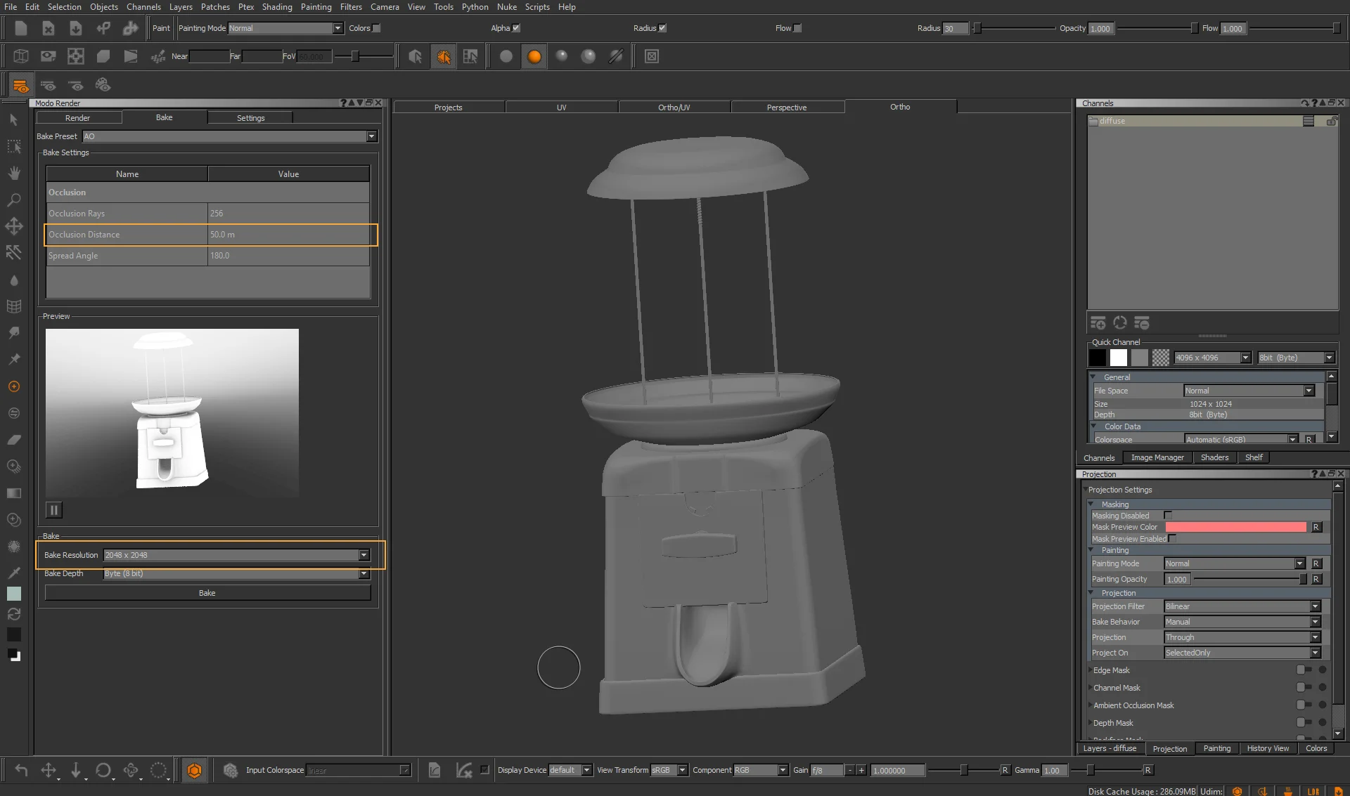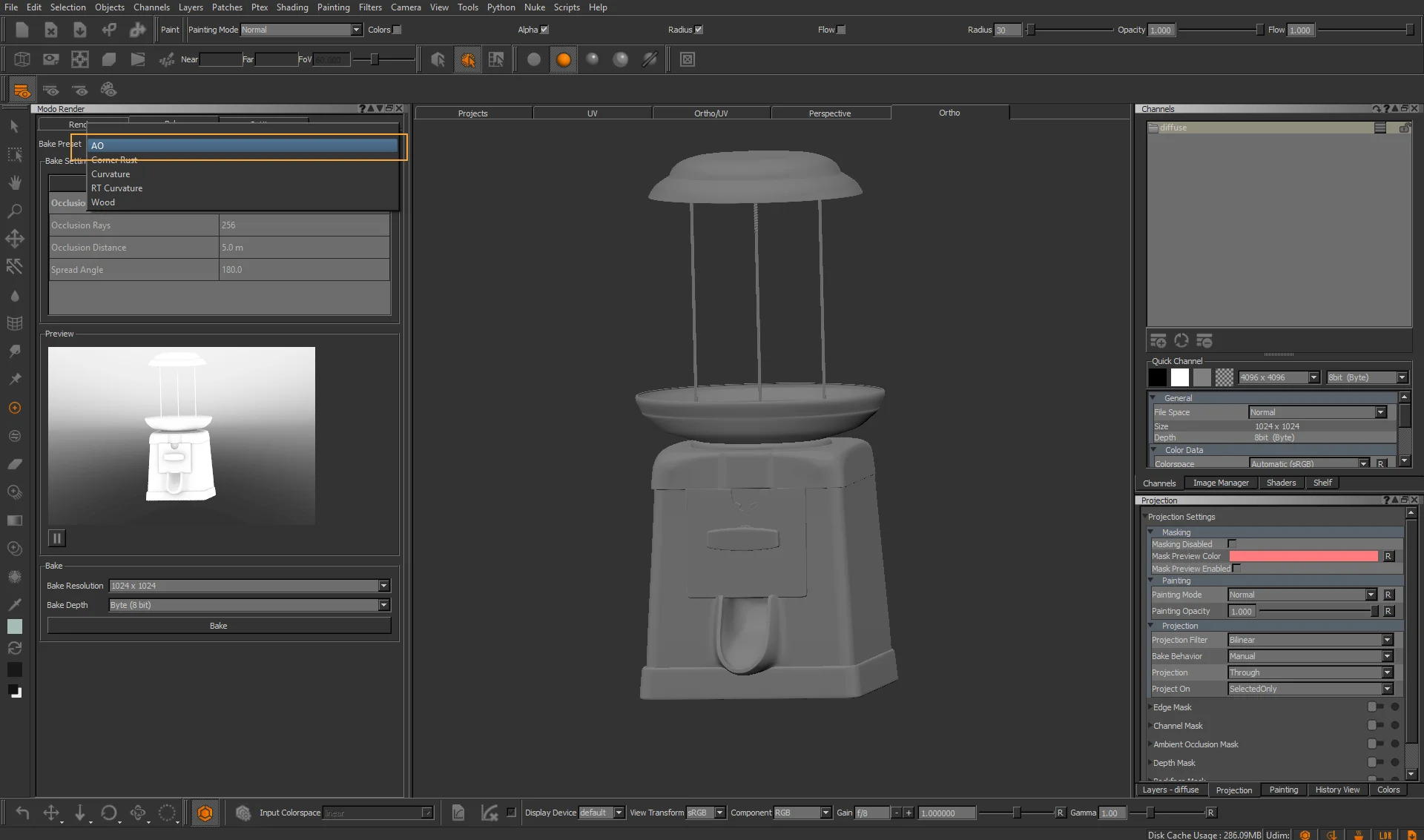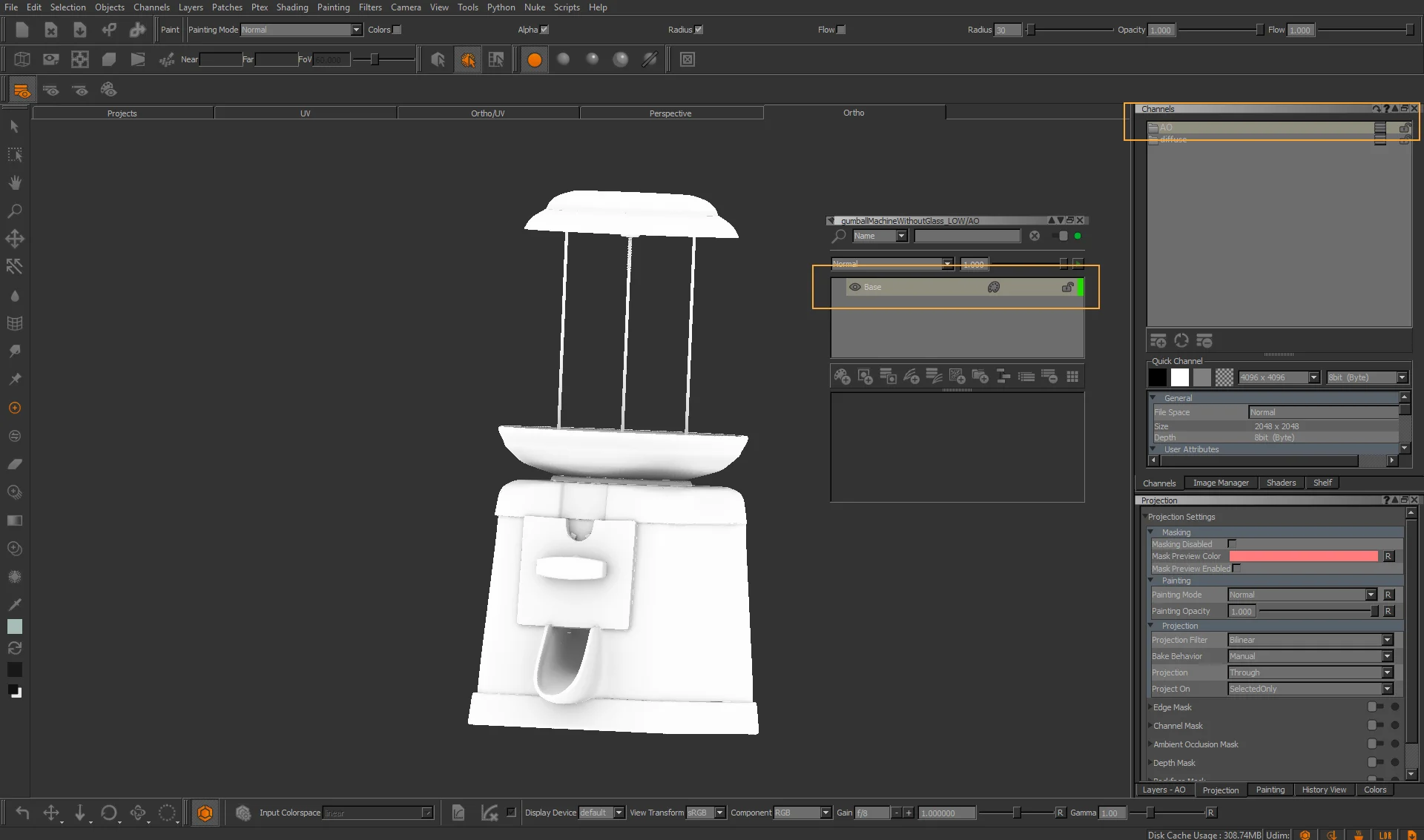 After the baking is done, you’ll see a new channel on your Channel tab called AO, and your baked map will be inside. Isn’t that sweet?