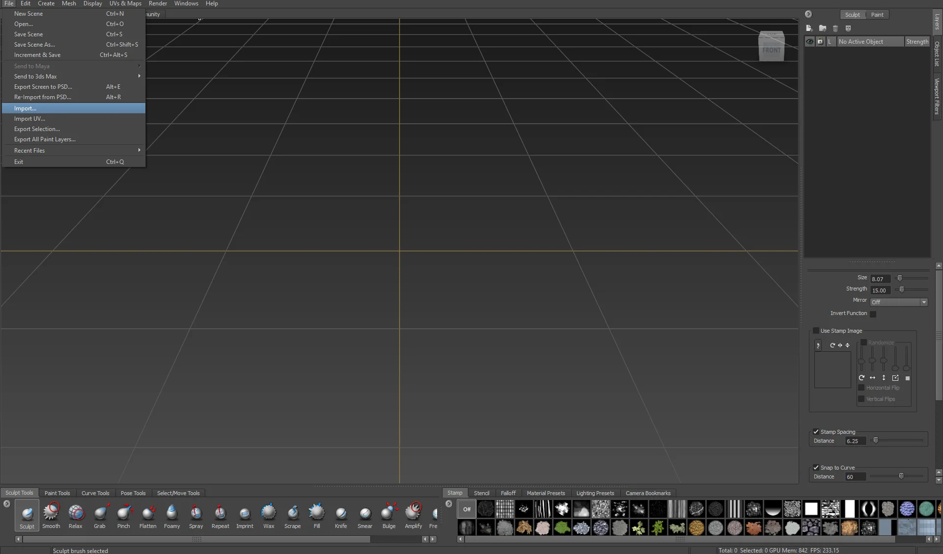 Open Mudbox and import your HIGH RES geometry.