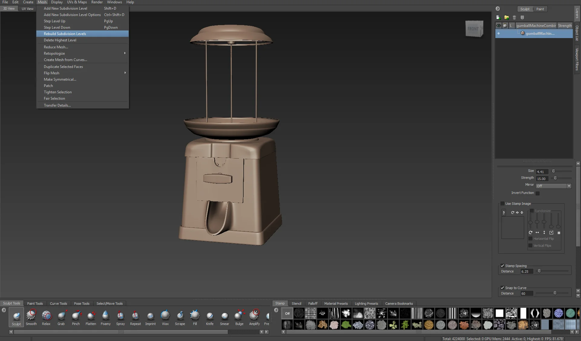 Common errors: Sometimes this option doesn’t work because Mudbox is sensitive to mesh errors. But don’t worry, if that’s your case, simply bring the same mesh with a lower resolution and you’ll be okay.