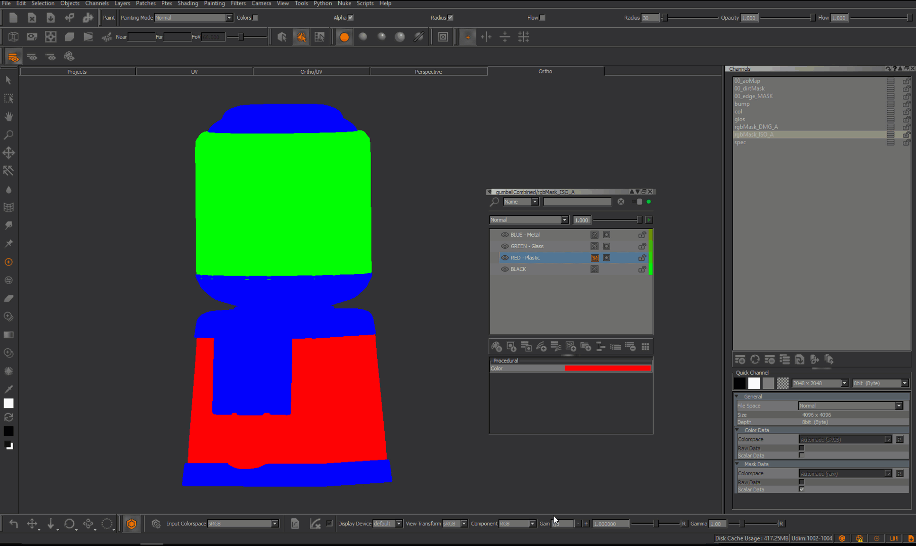 Creating an RGB Mask is as easy as it looks, but there are few things to consider. I’m going to showcase my workflow using MARI, but you can achieve the same result using Substance Painter, Photoshop, etc.