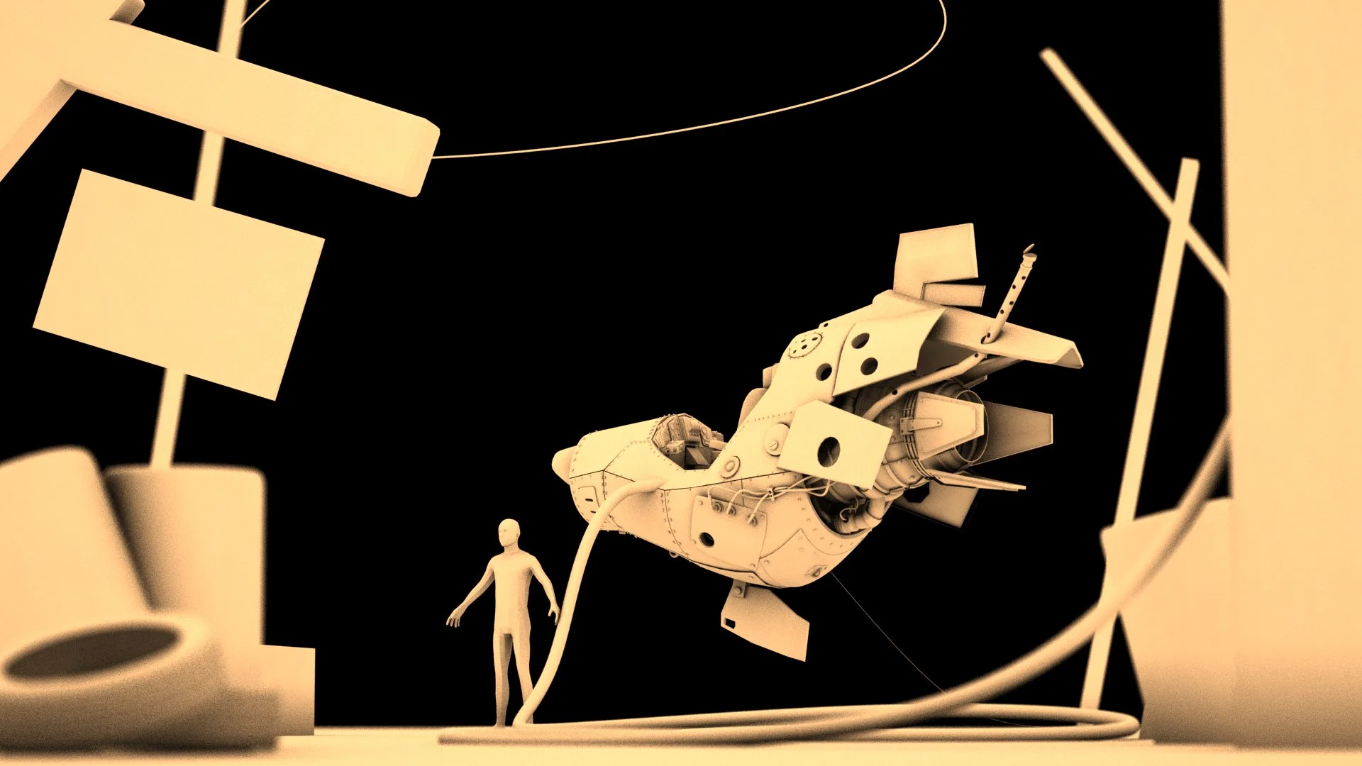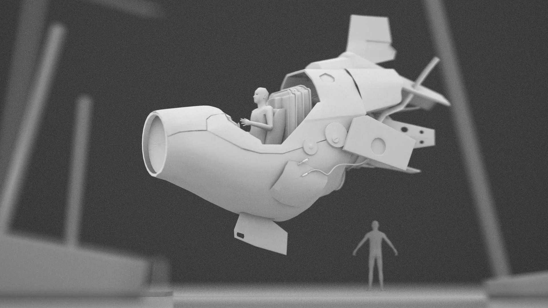So after letting go the fueling idea I started to work on a new story which would allow me to create something interesting but also “simple” enough to finish on time. After a while I thought about a relationship between a man and his machine, something like Han Solo and Millennium Falcon or even a guy and his car that he loves.
