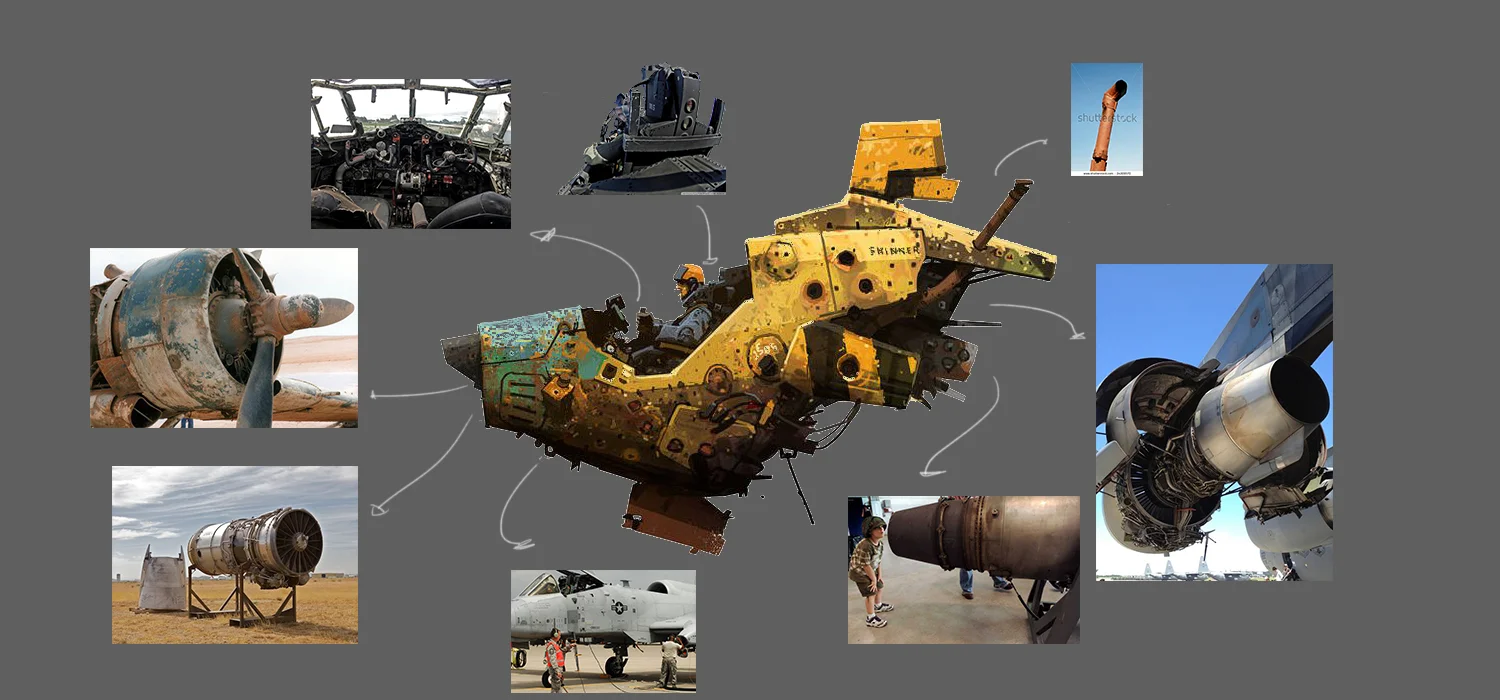 Since the concept didn’t have a detailed turbine, it was very important to grab and study a lot of different photos from jet turbines and space shuttles to fill this gap in my project.