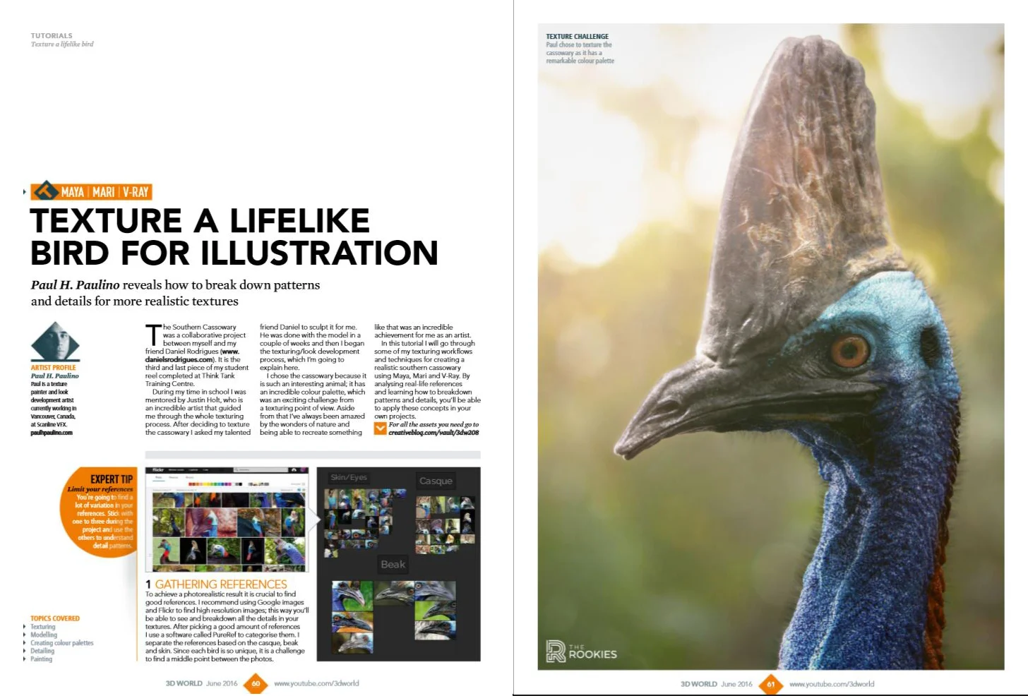 I was responsible for all the texturing/shading/fur aspect of the bird and Daniel provided the 3D model with primary and secondary details.
